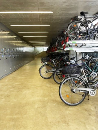 The Salzburg train station has bike parking. There are lockers & racks. There are 3 levels to this area. 100s of bikes! Motorcycle parking is outside this area. 20% of the locals commute by bike. Around 30,000 people! |