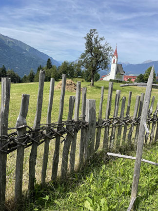 This is a historic ring fence that borders property to protect crops & animals. Fencing rights were established in the Middle Ages & are still recorded today. This is an example of a traditional fence. Austria is reviving the art & craftsmanship of fence construction. |