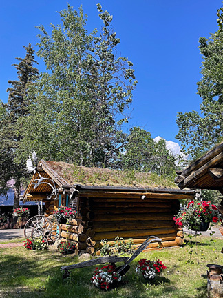 is one of the many restored buildings at the resort. The sod roof was
