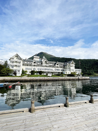 Balestrand has about 1400 permanent residents. It was established in 1850. This is the Kviknes Hotel, built in 1877. The interior is like walking through history. Since the late 1800s, artists have come here for the stunning landscapes & distinctive light. |
