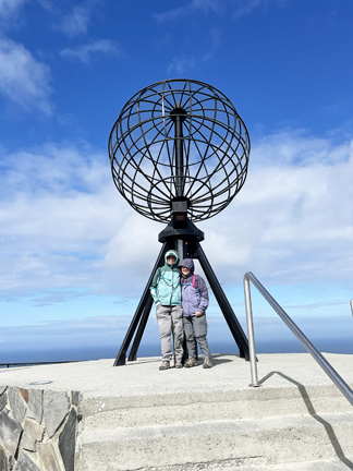 Nordkapp, the furthest point that you can travel by road in Norway, is visited by hundreds of thousands of tourists every year, us included! Even though its far north at 71 degrees latitude, its ice free all year because of the Gulf stream. We had a beautiful sunny day although the wind was howling & cool! |