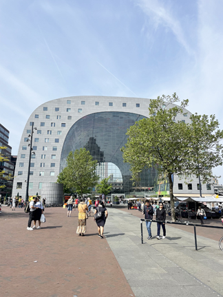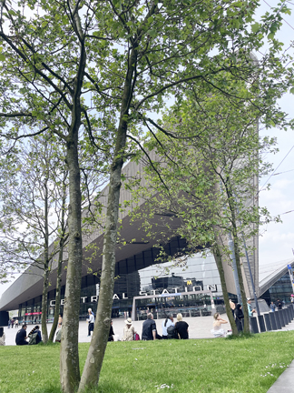 This is the Rotterdam Central Station for trains & buses. The roof is covered in solar panels. It opened in 2014 & averages 150,000 passengers daily. Above the word Station, theres a video screen the size of a tennis court that plays video clips of Rotterdam & the harbor. |