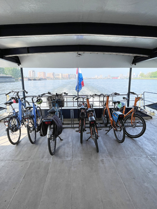 We took a waterbus from the Erasmus Bridge in Rotterdam up the Maas River to Kinderdijk, a UNESCO World Heritage Site. During the 40 minute ride we passed barges, water taxis, car ferries, pleasure boats, tour boats and more. Lots happening on the river! |